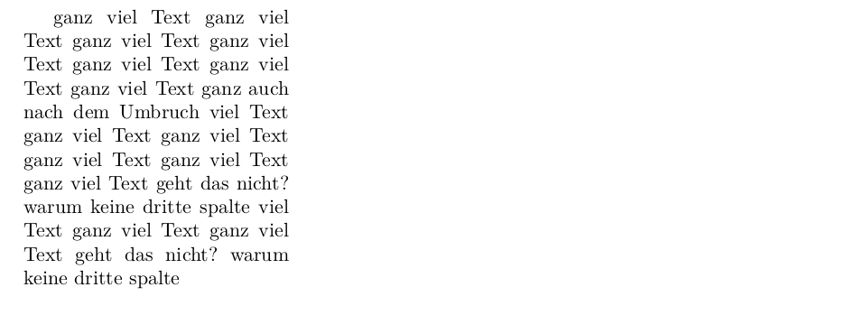 Mit Hilfe des Befehls \columnbreak kann eine Art Seitenumbruch durchgeführt werden.